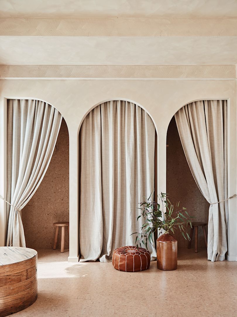 Moroccan and Arabian themed relaxation and treatment rooms. A complete interior update to one of the earliest treatment facilities on the property, adding layers, textures and all important acoustic separation between each treatment room.